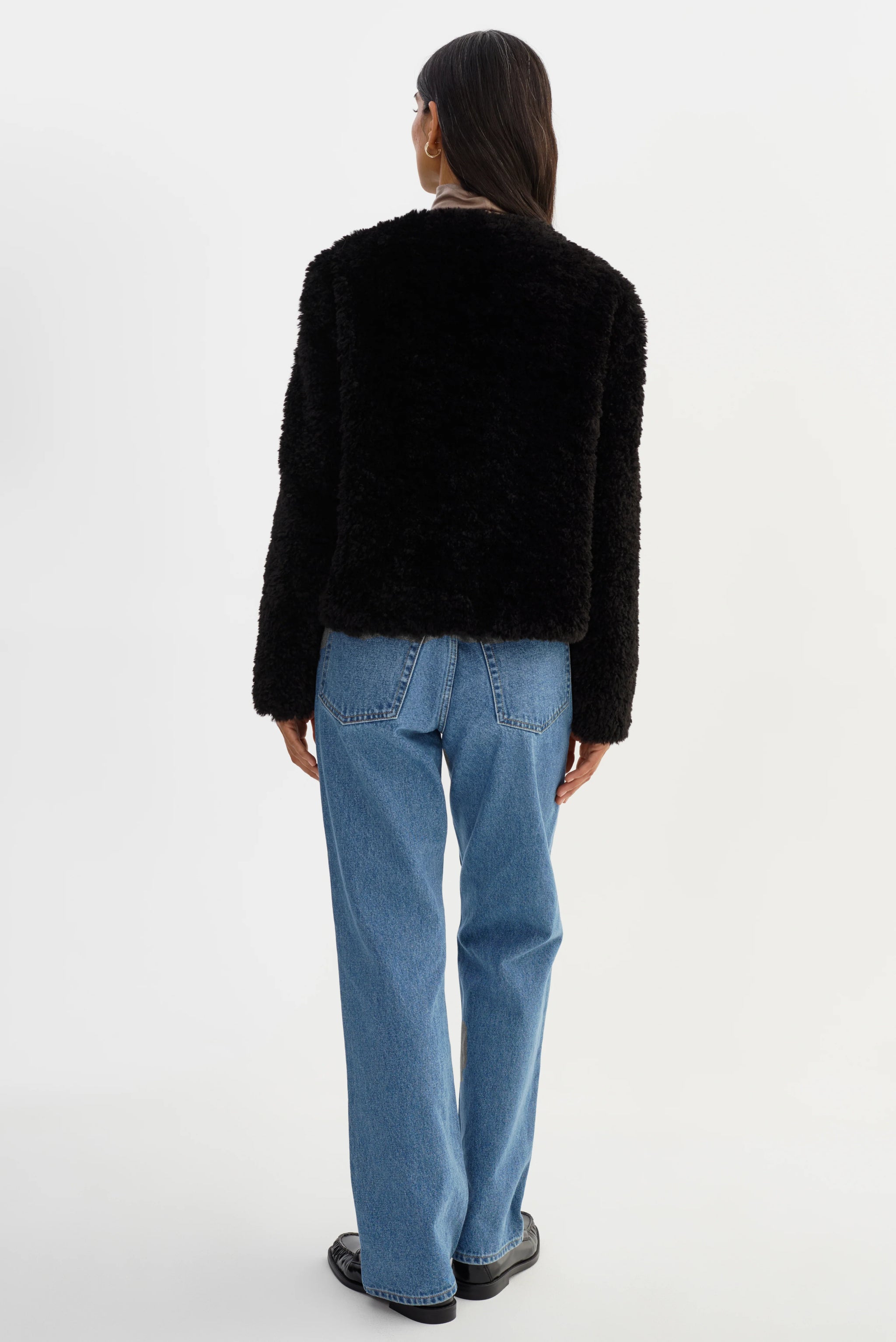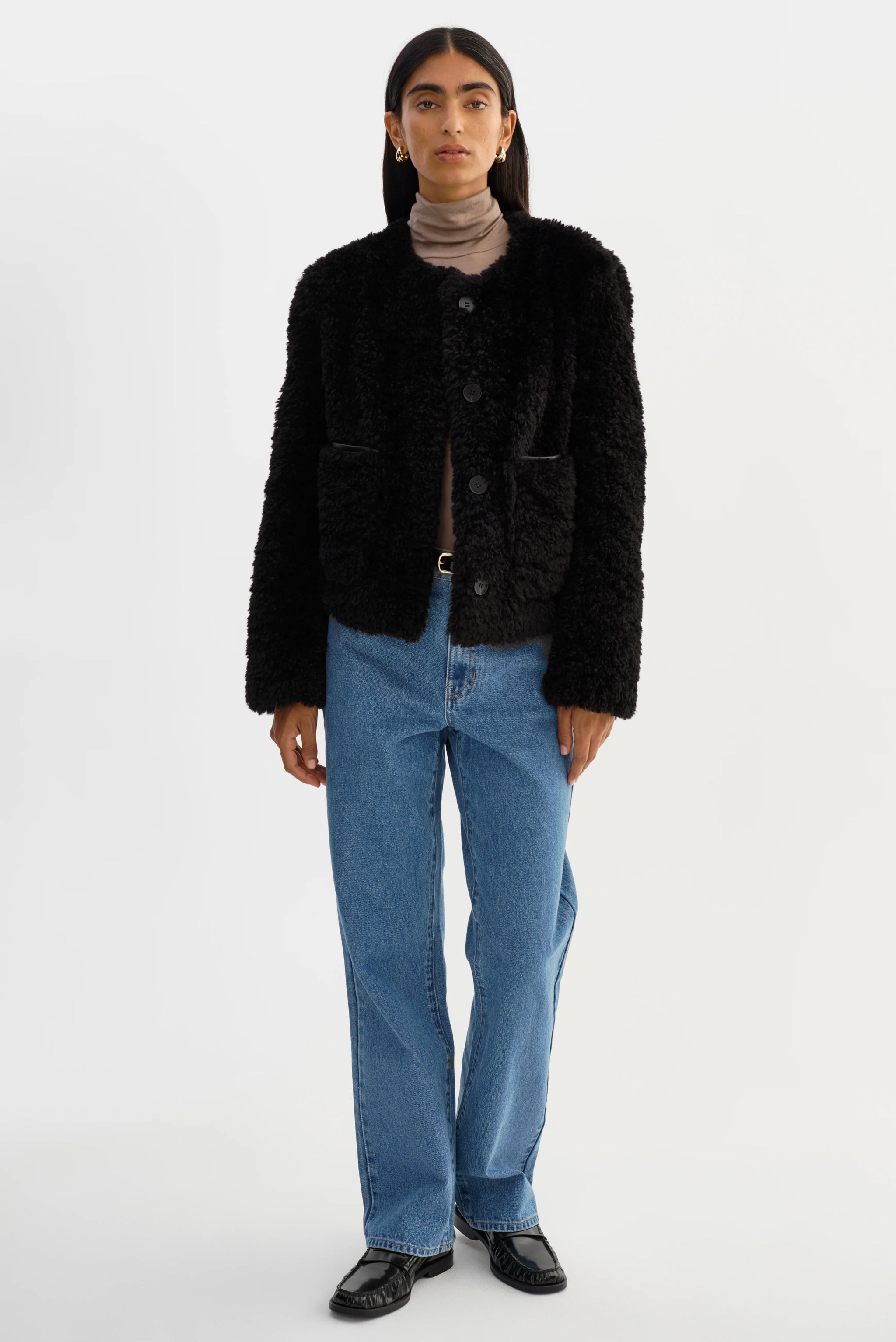 Effortlessly refined, the EMILIA Sherpa Jacket blends texture and polish for a modern take on cozy dressing. Crafted from soft curly sherpa, it features a...