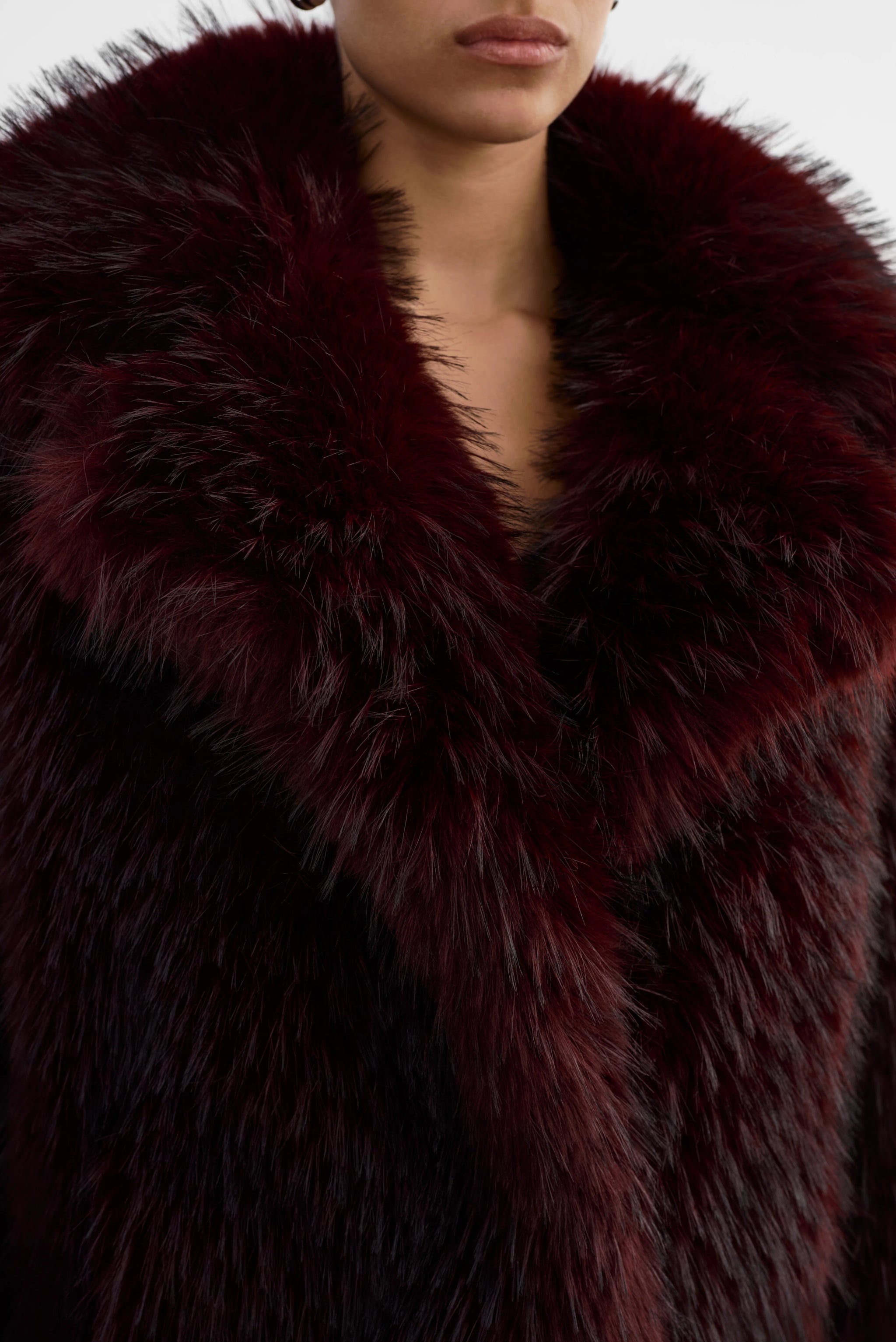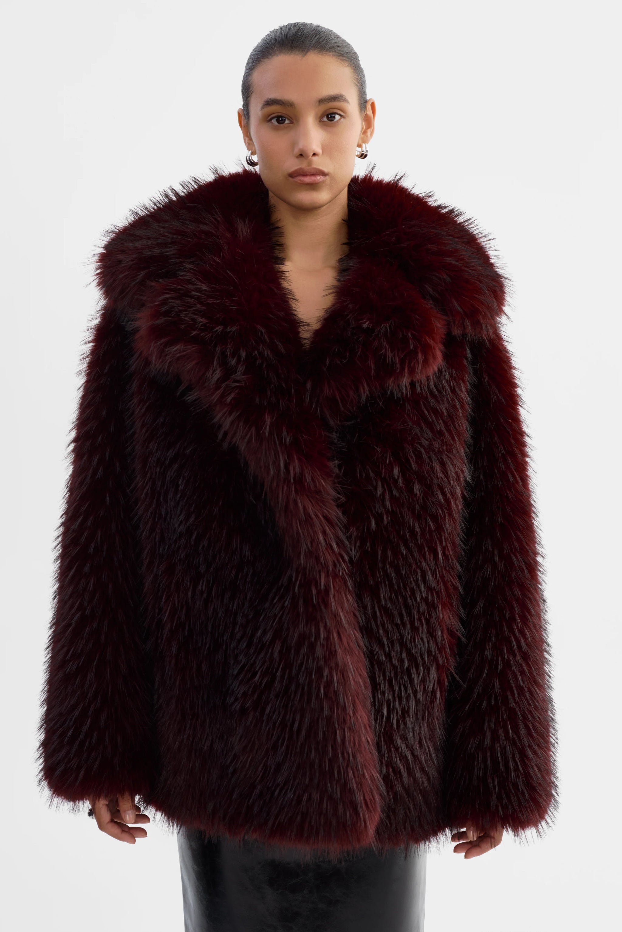 The FINAYA Faux Fur Coat channels bold glamour with its voluminous long-hair texture and oversized notch collar. Designed in a relaxed silhouette with hook closures...