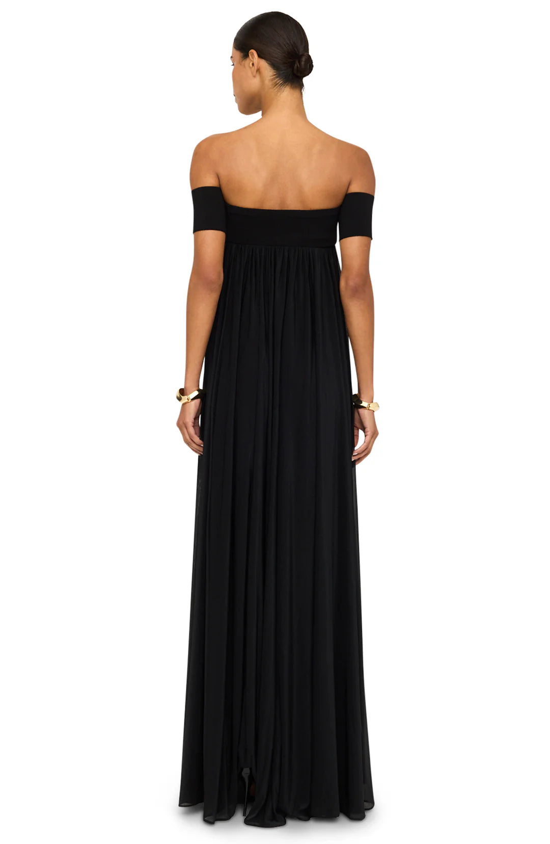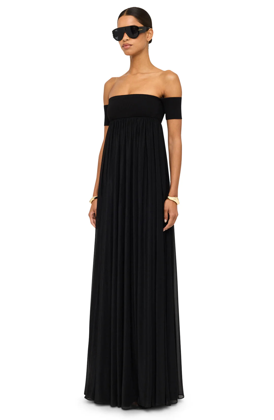 The Miles Dress by Ronny Kobo is a sophisticated full-length black dress designed for occasions that demand elegance. This statement piece features a fluid, elongated...
