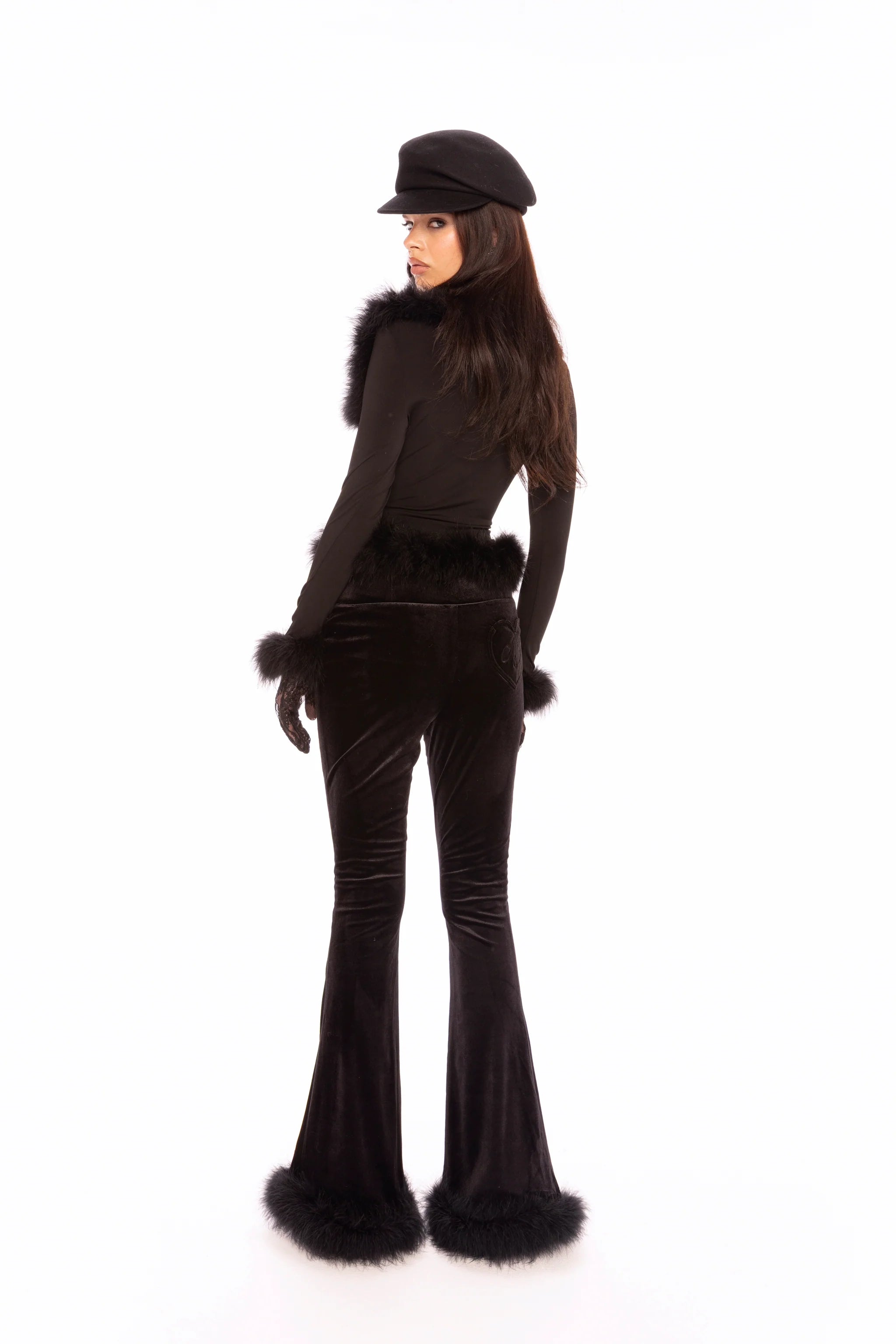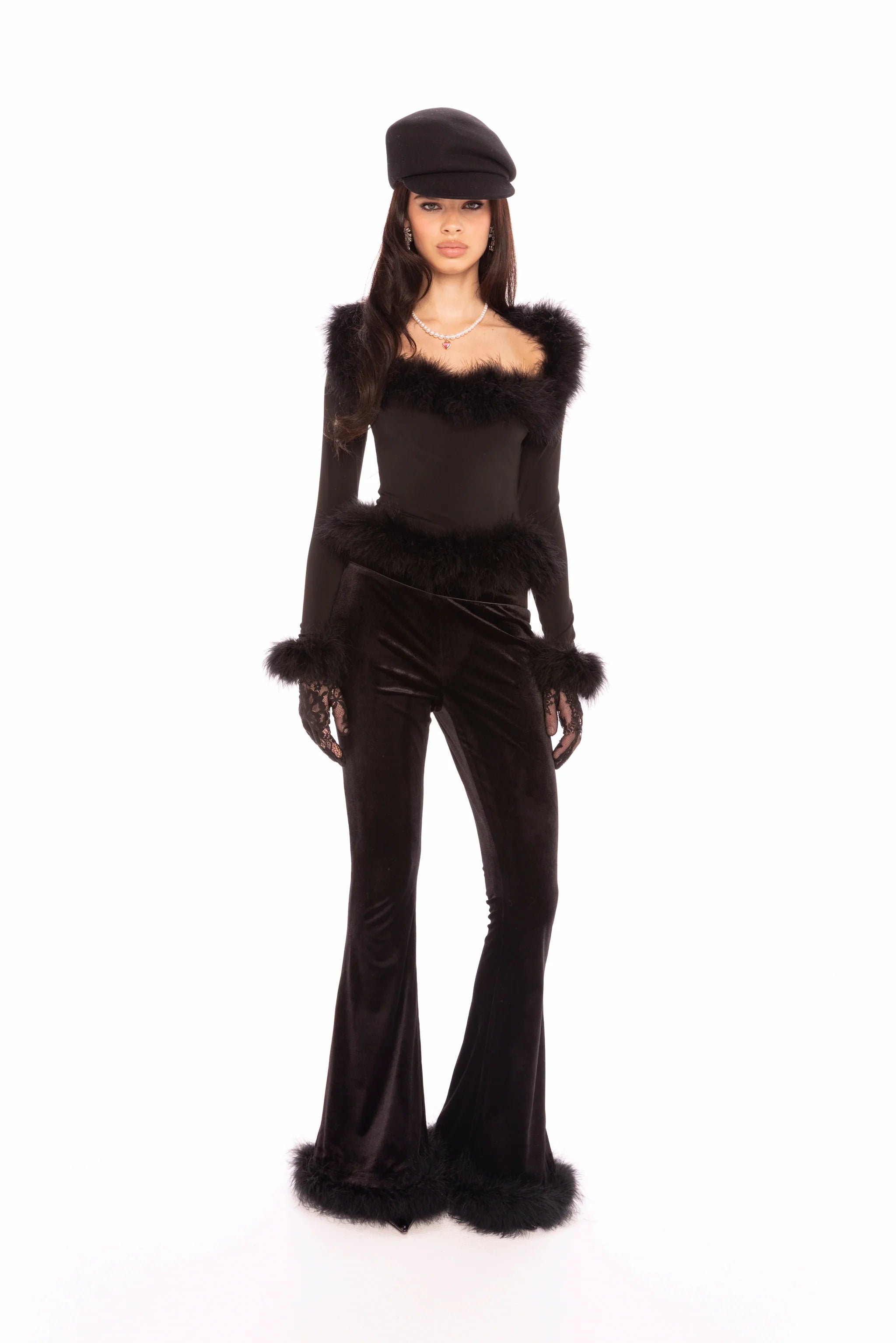 The Estelle Velvet Pants capture the magic of midnight elegance. Crafted from high-stretch black velvet fabric, these designer velvet flare pants sculpt the figure with...