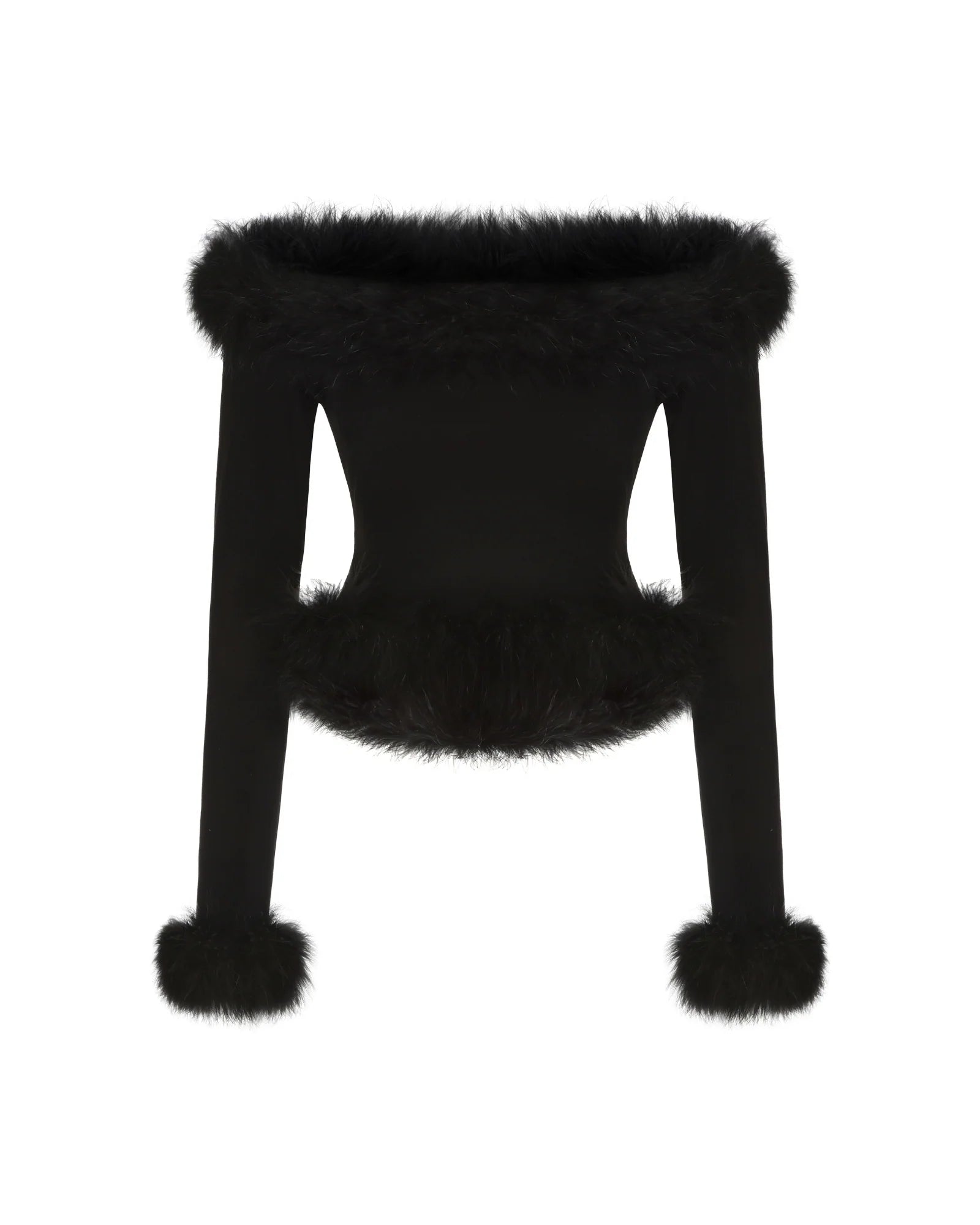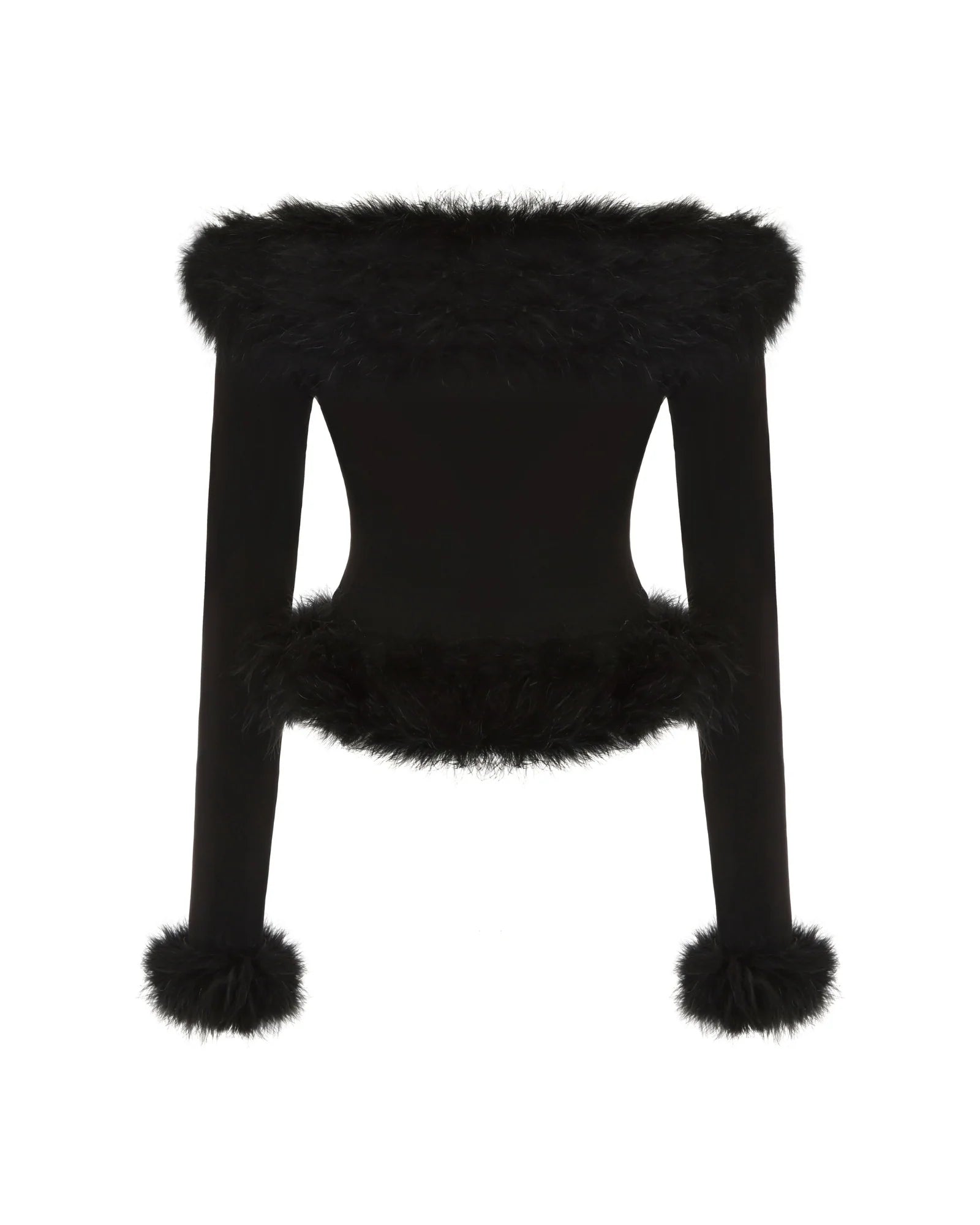 Inspired by swan-like grace, the Viola Feather Top blends warmth and allure. This furry knit top is crafted from soft bionic stretch fabric that contours...