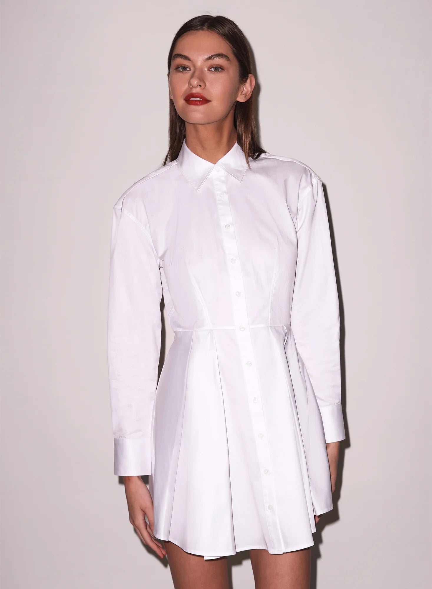 Crafted from crisp poplin, the Zoe Shirt Dress combines classic shirting elements with a refined silhouette. The structured front placket and button closure transition seamlessly...