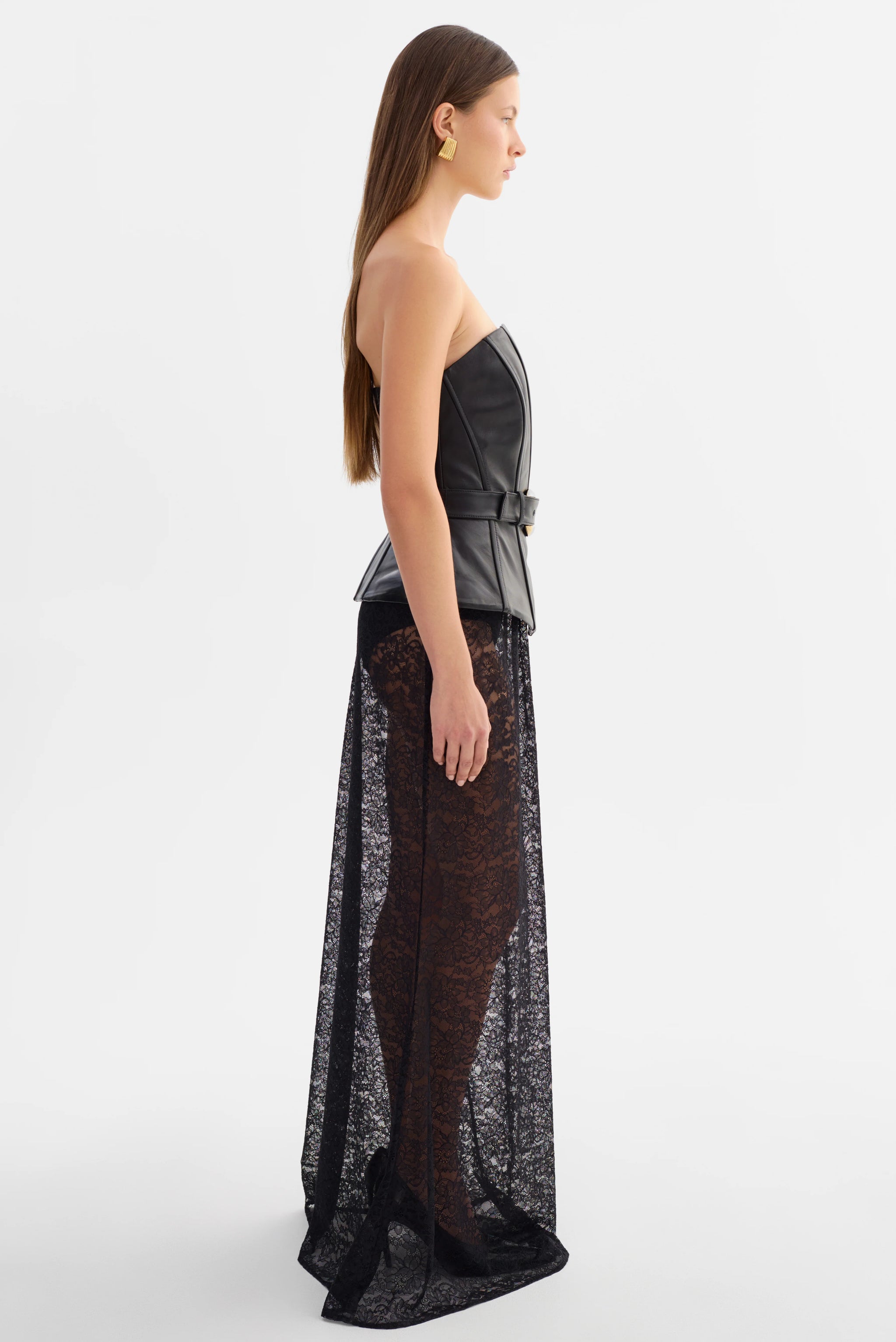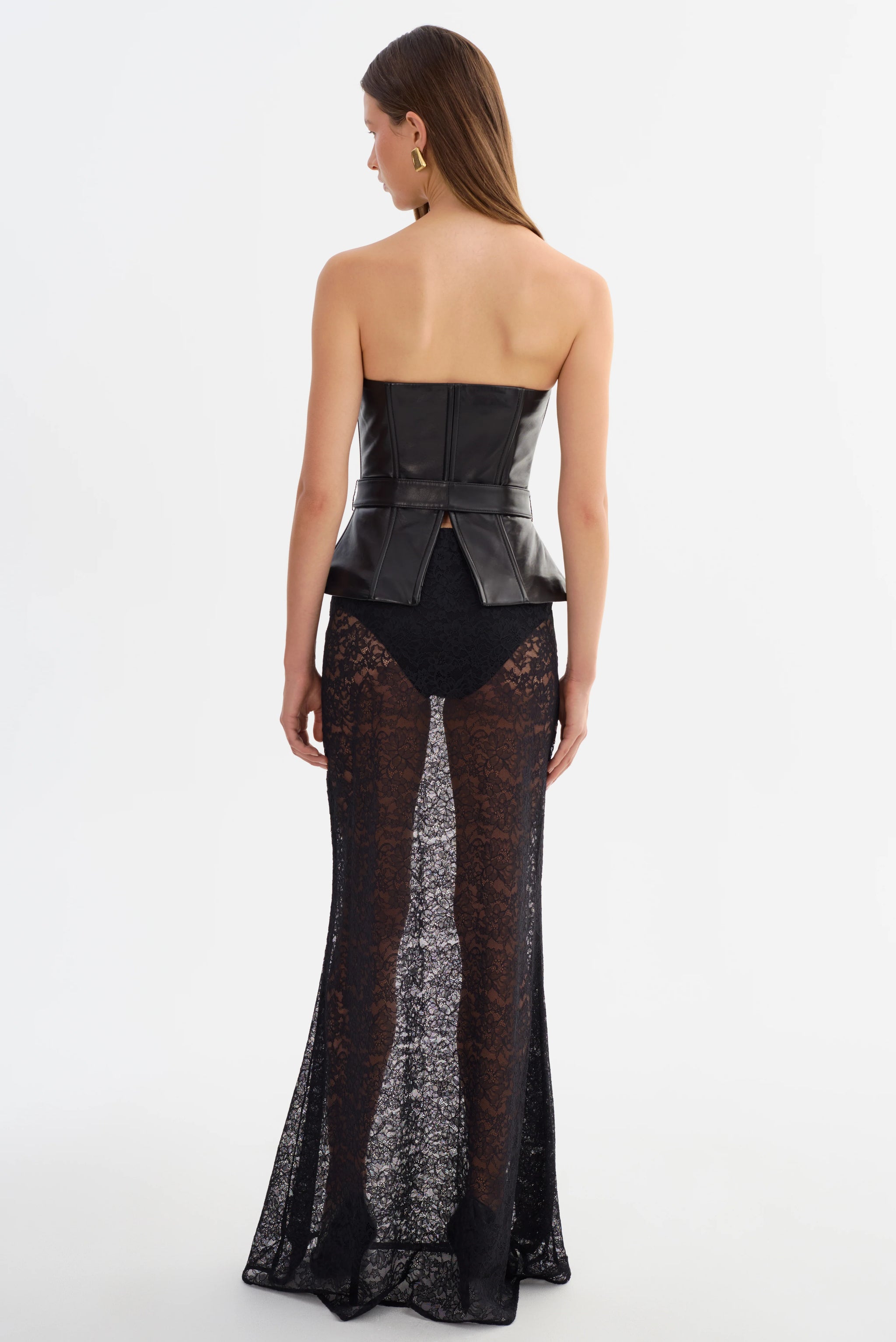 The CALA Leather Bustier redefines structure with a sleek corset-inspired silhouette. Featuring an asymmetrical neckline and hemline, boning throughout, and a removable belt, it brings...