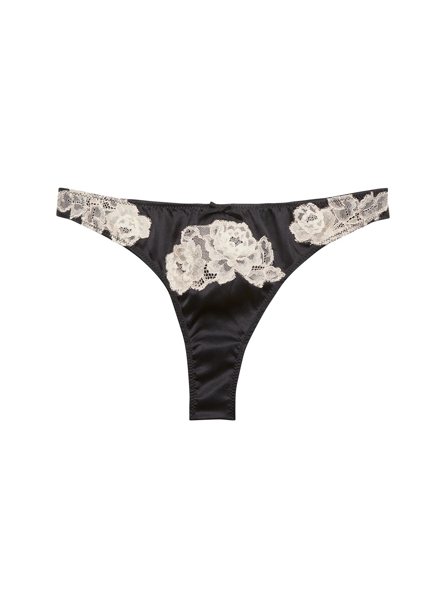 Our Juliet Lace Thong, cut from luxe silk charmeuse with lace appliqué details. Features front bow and back keyhole detail. Complete this stunning set with...
