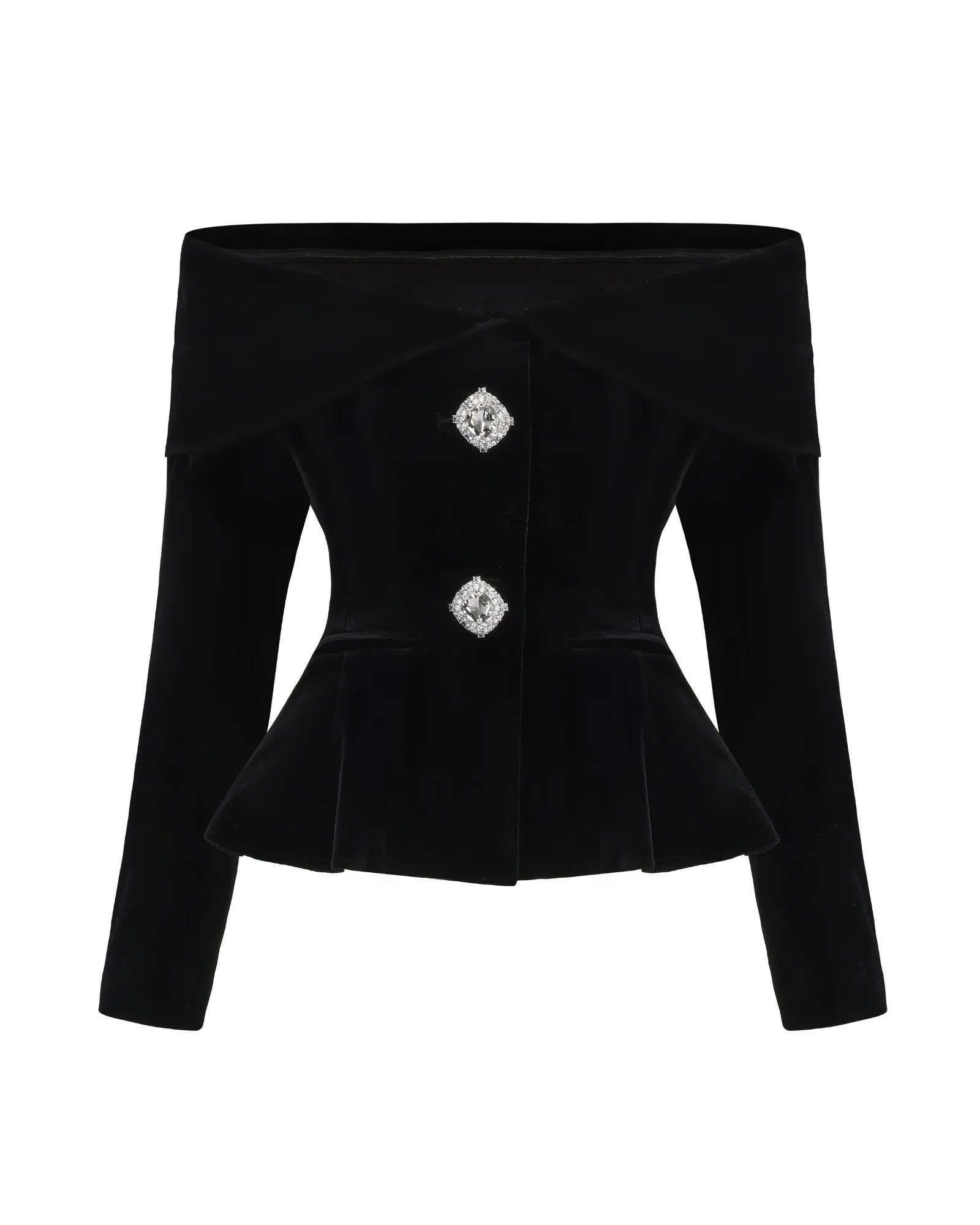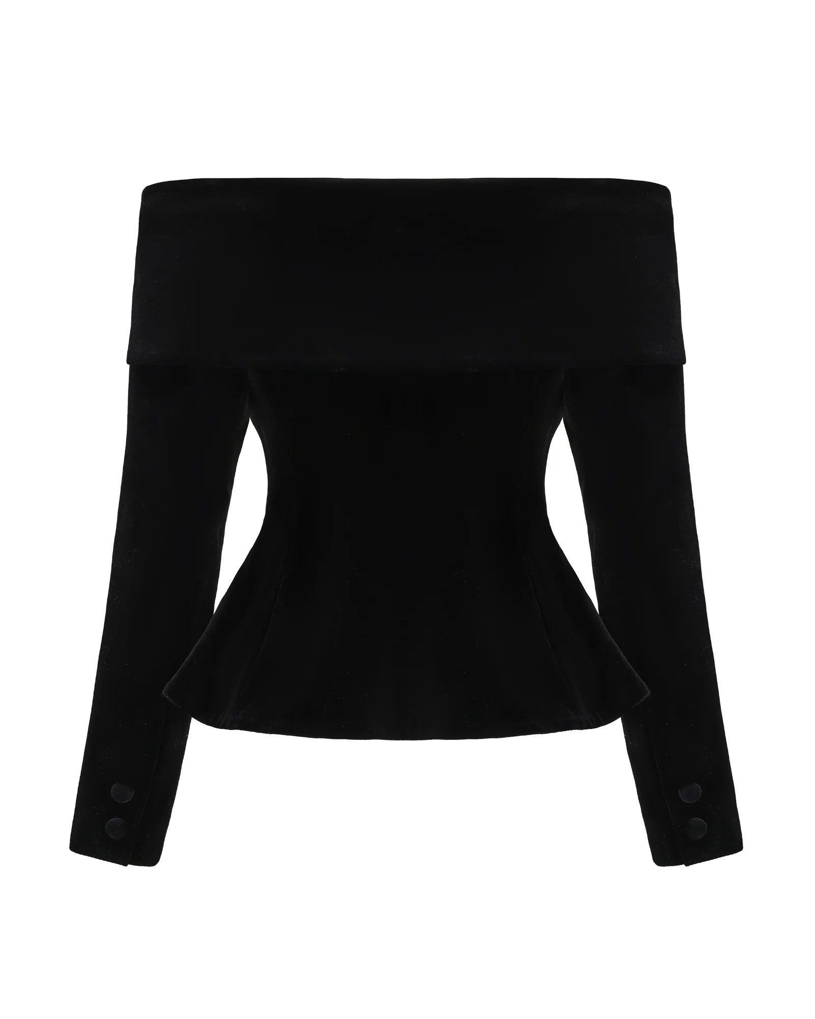 The Blaire Velvet Top is a luxury velvet top designed to enchant with its off-shoulder silhouette and cinched waist. Crafted in rich black velvet, this...