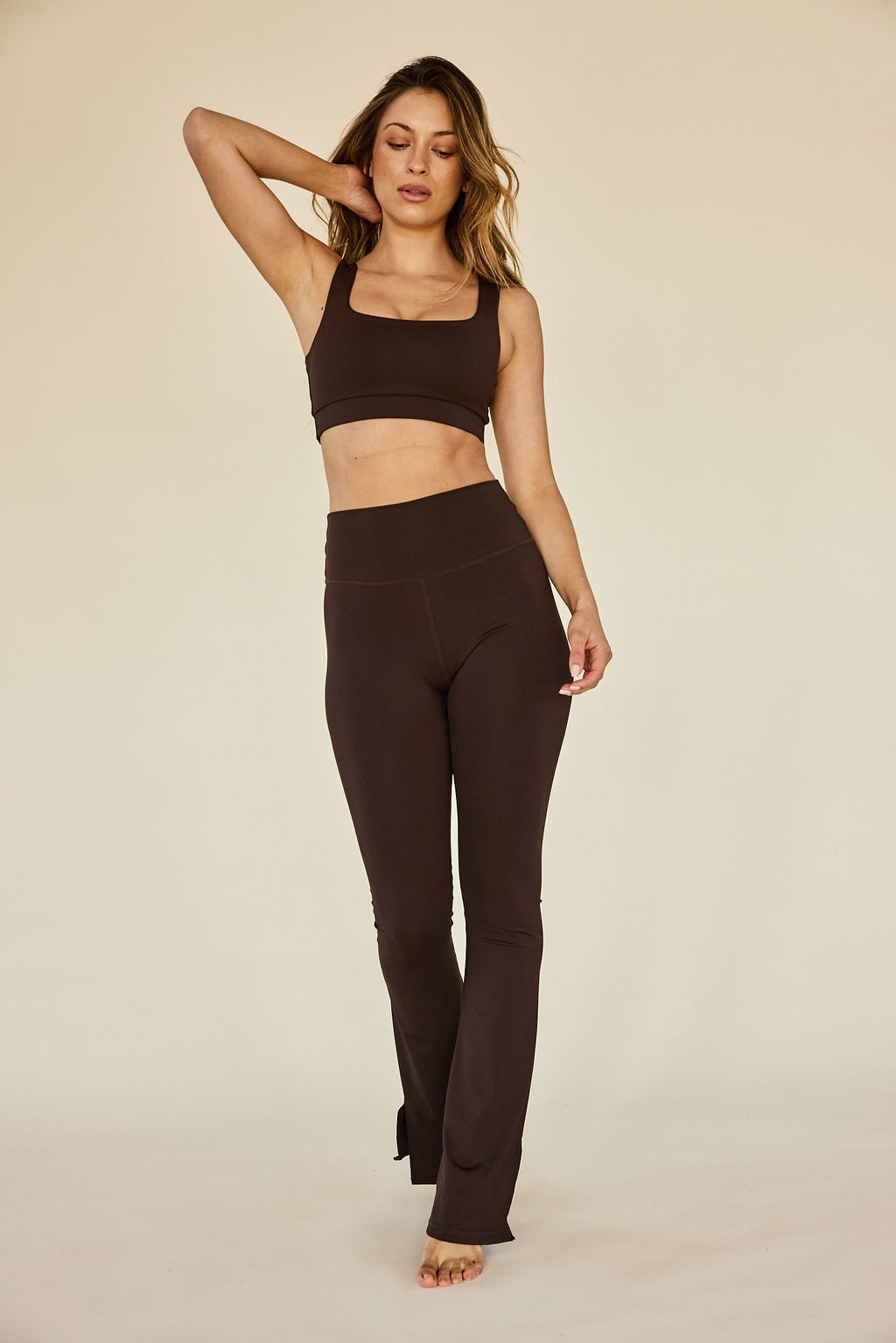 High-rise stirrup style legging. Shown here in Slate Brown. 62% Viscose, 23% Spandex, 15% Nylon Made in China Model is 5'10" wearing size S Style...