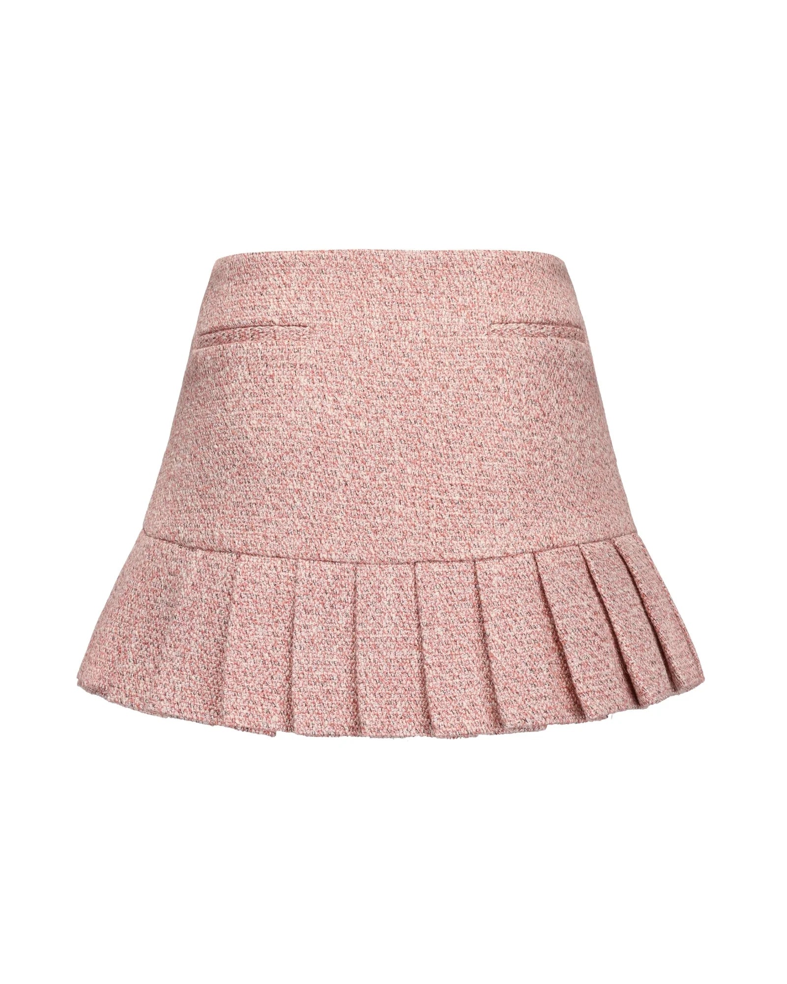 The Gia Pleated Mini Skirt captures the romance of Parisian mornings with its pink tweed skirt design, woven from Chanel-inspired fabric threaded with pink silk,...